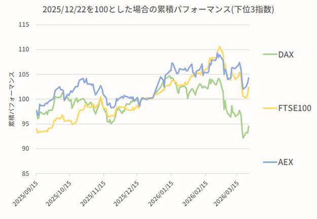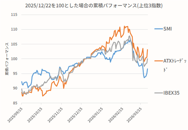 ここでは欧州主要国の株式相場の動きと、その違いを確認する。