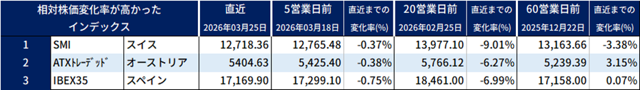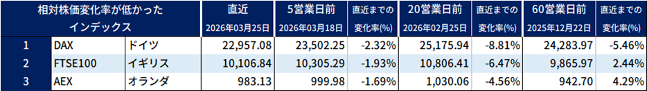 相対株価上昇率が低かった銘柄(直近5営業日の株価変動)