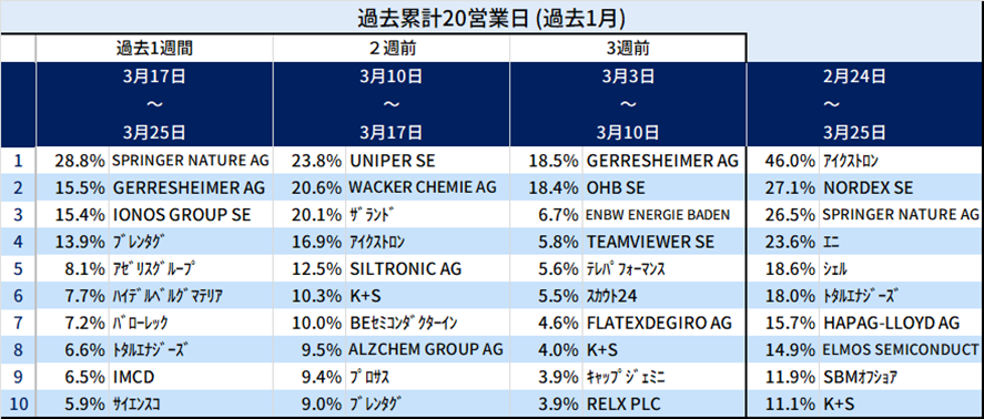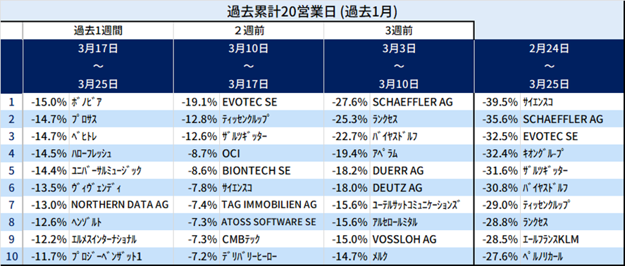 欧州個別株式で株価変化が大きかった銘柄: