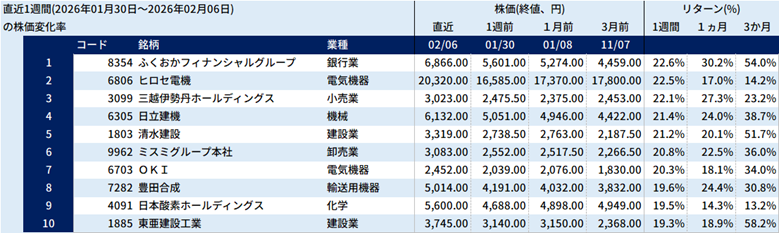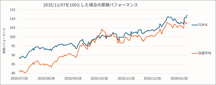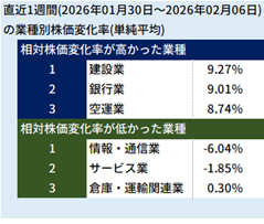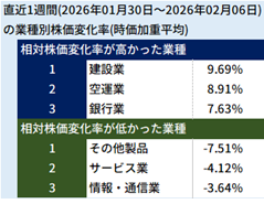 - TOPIX : 3,652.41pts。5営業日前対比で3.02%の上昇。