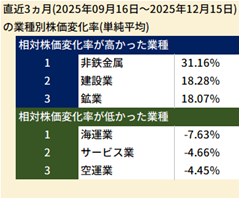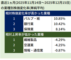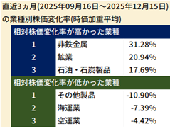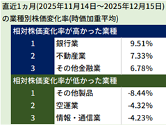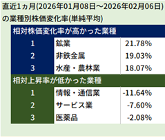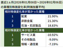 TOPIX業種別インデックス : 時価加重平均のため業種内の主要(大型)銘柄の動きをより強く反映