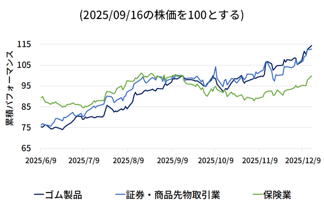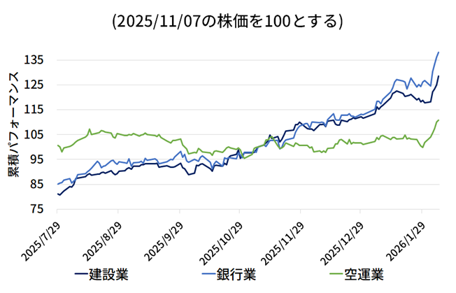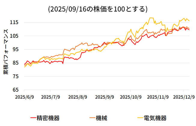 JTG選出業種別インデックス : 単純平均のため業種内の中小型銘柄の動きをより強く反映