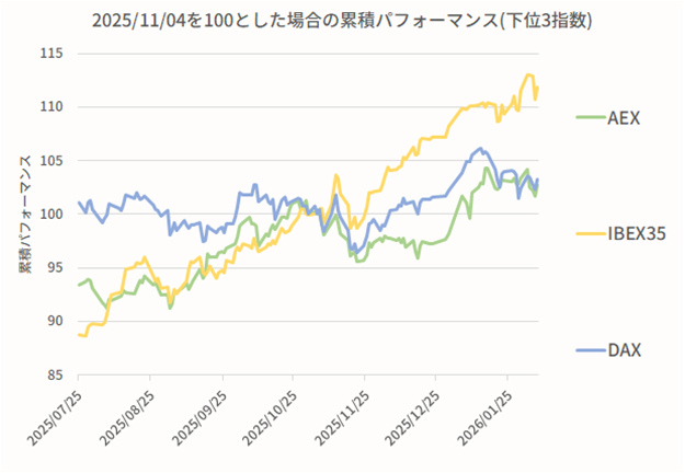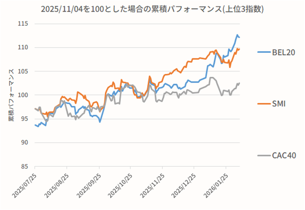 ここでは欧州主要国の株式相場の動きと、その違いを確認する。