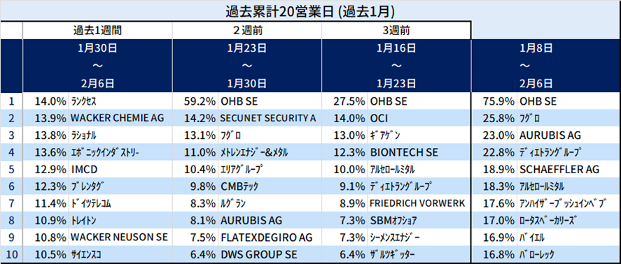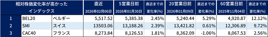 相対株価上昇率が高かった銘柄(直近5営業日の株価変動)