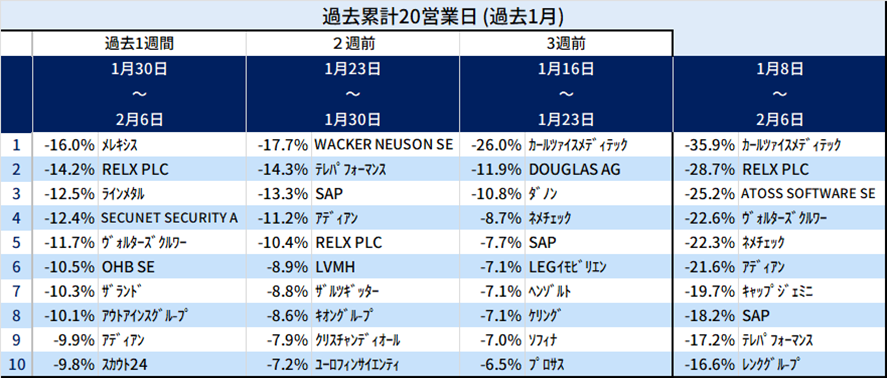 欧州個別株式で株価変化が大きかった銘柄: