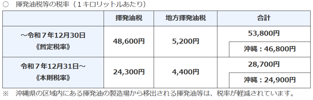 ガソリン税1リットルあたり25.1円、軽油17.1円の上乗せ税率の廃止により、年間約1.5兆円の減税効果があります。