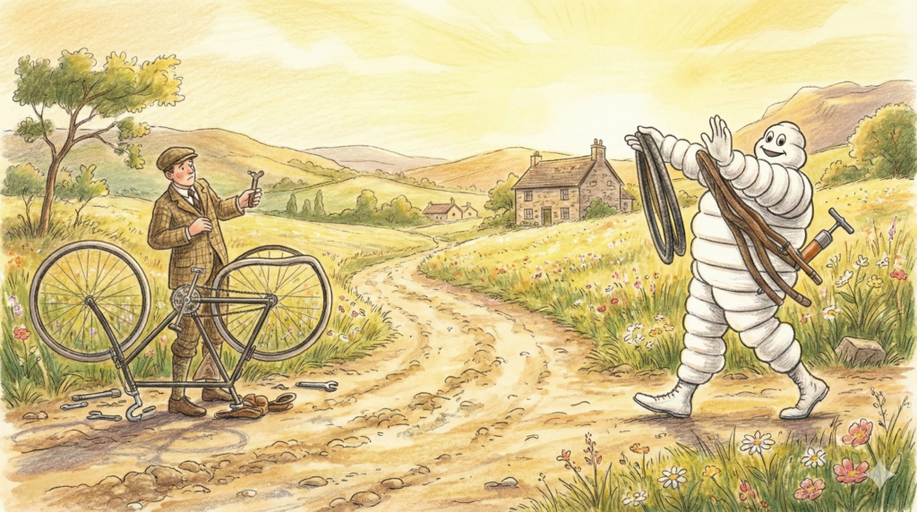1889年、兄弟は経営不振に陥っていた家業を引き継ぎ、本格的にゴム製品事業へと舵を切ります。当初は困難の連続でしたが、1891年に自転車用の「着脱可能な空気入りタイヤ」を実用化したことで状況は一変しました。このミシュラン社の発明は、消耗品であるタイヤの交換を短時間で可能にし、自転車や自動車の信頼性を飛躍的に高めることとなりました。