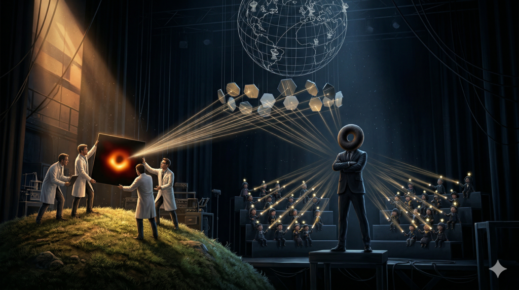 この成果の裏側には、国境を越えた研究者たちの長い年月にわたる努力があります。イベント・ホライズン・テレスコープは、地球上にある複数の電波望遠鏡を結合させ、銀河の中心にある巨大ブラックホールの姿を捉える、という一大プロジェクトでした。ハワイ、チリ、南極など世界各地の望遠鏡を同時に連携させ、地球そのものをひとつの巨大な望遠鏡として使うという、スケールの大きな発想に基づく挑戦でした。観測によって得られたデータは膨大で、ハードディスクにして数ペタバイト規模とも言われます。それを運び、解析し、ひとつの画像に仕上げるまでには多くの時間と工夫が必要でした。無数の人の手と知恵がつながって初めて実現した一枚。その背景を知ると、あの静かなリングがより一層重みを帯びて見えてきます。