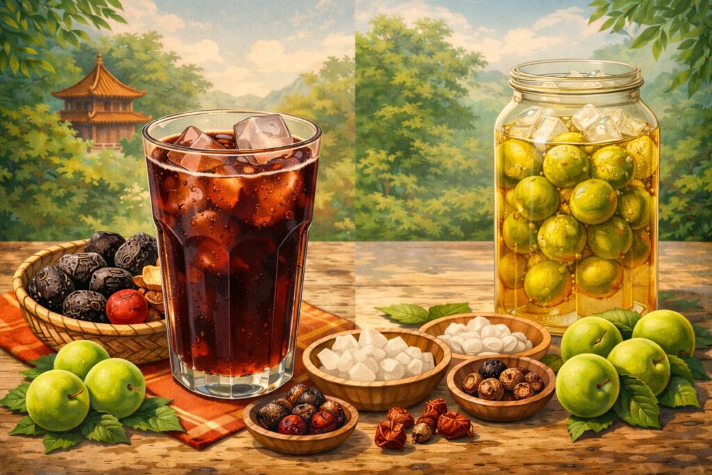 酸梅湯は、一見するとただの伝統飲料に見えるかもしれない。しかし、その一杯の中には、中国の真夏を乗り切るための食文化の知恵が凝縮されている。日本の梅シロップと比べてみることで、その違いはいっそう鮮明になる。似ているようで違う。けれど、どちらにも夏を涼やかに過ごそうとする人々の工夫が込められている。季節とともに生きる文化を感じさせてくれる存在なのである。